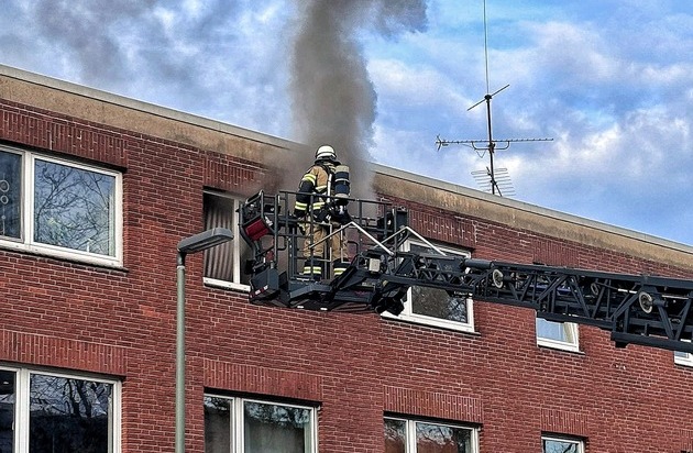 Beim Eintreffen der ersten Einsatzkräfte bestätigte sich die Meldung. Ein Team unter Atemschutz verschaffte sich gewaltsam Zugang zur betroffenen Wohnung und setzte einen Rauchvorhang, um eine Rauchausbreitung in den Treppenraum zu verhindern. Anschließend wurde die Wohnung nach Personen durchsucht und der Brandherd lokalisiert. Personen befanden sich zu diesem Zeitpunkt nicht in der Wohnung.