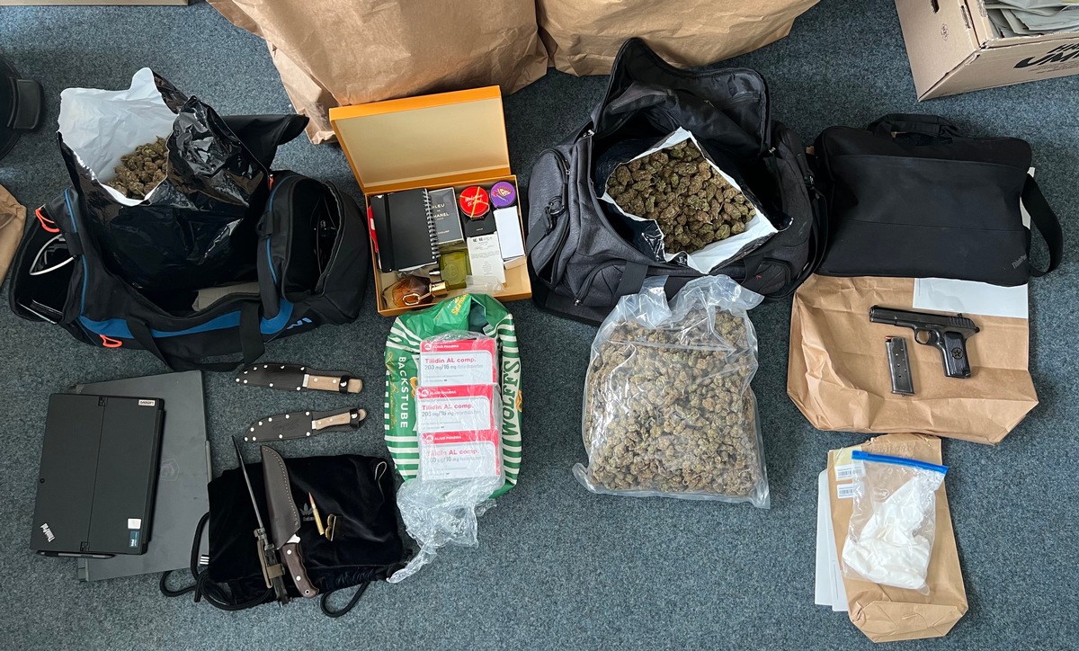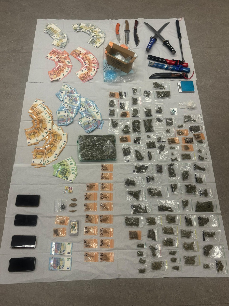 In der Wohnung des Festgenommenen stellten die Ermittler größere Mengen verschiedener Drogen - rund 200 Gramm Haschisch und etwa 12 Gramm Kokain -, Bargeld, Mobiltelefone sowie mehrere Messer und einen Schlagstock sicher.