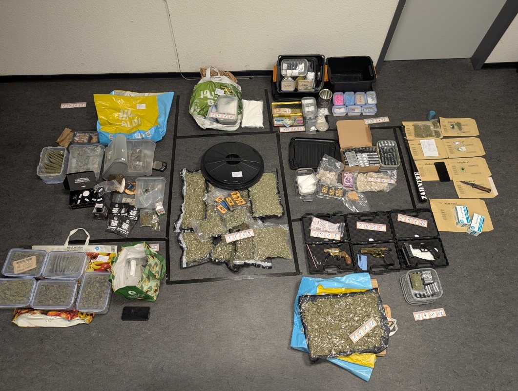 Dank eines aufmerksamen Zeugens haben Zivilermittler des Einsatztrupps Mitte am Dienstagmittag (28. April) in der Kölner Innenstadt einen mutmaßlichen Drogendealer (27) festgenommen und verschiedene Betäubungsmittel beschlagnahmt. In einer Wohnung in der Hochstadenstraße fanden sie unter anderem mehrere Kilogramm Cannabis, mehrere 100 Gramm Haschisch und weitere Betäubungsmittel. Zudem lagen in der Wohnung etwa 2.000 Euro Bargeld sowie mehrere Schusswaffen.