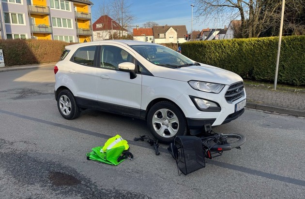 SI / Bielefeld / Jöllenbeck - Am Mittwoch, 21.01.2026, erfasste ein Pkw-Fahrer beim Abbiegen und tiefstehender Sonne ein Pedelec. Bei dem Unfall auf der Kreuzung Waldstraße / Jöllenbecker Heide wurde die Radlerin leicht verletzt.