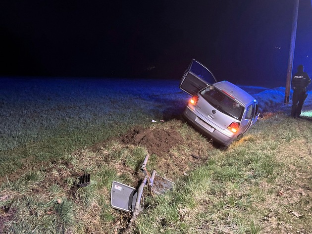 FR / Bielefeld / Dornberg - In der Nacht von Mittwoch auf Donnerstag, 19.03.2026, verlor ein Bielefelder auf der Schröttinghauser Straße die Kontrolle über sein Auto und fuhr in den Graben. Die Polizei stellte mehrere Delikte fest.