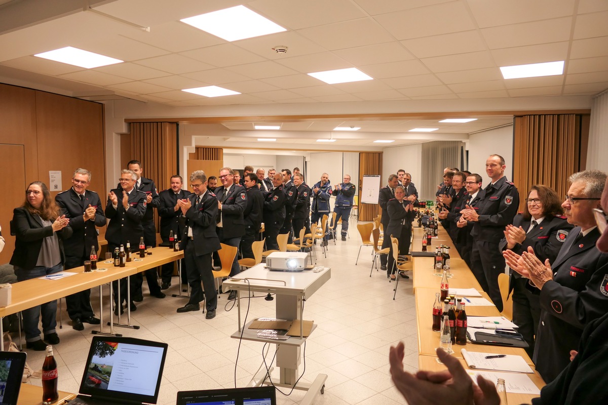 Am 31.10.2025 trafen sich im Gründerzentrum in Kalkar- Kehrum alle Führungskräfte der Freiwilligen Feuerwehr Kalkar zu einer Brandmeistersitzung. Teilgenommen haben auch Kameradinnen und Kameraden ab dem Dienstgrad des Brandmeisters, Bürgermeisterin Dr. Britta Schulz, Vertreter der Stadt Kalkar sowie das THW Ortsverband Kleve als besondere Gäste. Der erste Tagesordnungspunkt war die Verabschiedung der Bürgermeisterin Frau Dr. Britta Schulz. In seiner Rede hob der Leiter der Feuerwehr Kalkar, Roland Matenaer, die gute Zusammenarbeit mit der Bürgermeisterin hervor und den stets guten Umgang miteinander. Besonders erwähnte er die Beschaffung des Rettungsbootes der Löschgruppe Niedermörmter und die Umsetzung des Brandschutzbedarfsplanes. Nach seiner Rede erhoben sich alle Anwesenden für einen langen Applaus. Die sichtlich gerührte Bürgermeisterin bedankte sich für gute Zusammenarbeit und betonte, man sei sich in allen Gesprächen immer auf Augenhöhe begegnet. Als Abschiedsgeschenk überreichte ihr die Wehrführung ein Stück Feuerwehrschlauch mit der Aufschrift "Vielen Dank für die gute Zusammenarbeit" Einen sehr interessanten Vortrag über das THW hielt Klaus Heimann, der Ortsbeauftragter des THW Ortsverband Kleve, über die Ausrüstung und die Aufgaben des THW. Im Anschluss konnte man einige Fahrzeuge des THW bestaunen, insbesondere einen Lkw, der mit einem Kran ausgestattet ist, zum Neupreis von 450.000 Euro. Zu einem weiteren Thema der jährlichen Veranstaltung gehörten Fort- und Weiterbildungen: Neben den regulären Übungsdiensten leisteten die Kameradinnen und Kameraden der Feuerwehr Kalkar auch zahlreiche zusätzliche Stunden in speziellen Lehrgängen, um ihre Fähigkeiten stets aktuell zu halten. So wurden Truppführer, Atemschutzgeräteträger, Maschinisten, Sprechfunker sowie Einsatzkräfte für ABC-Einsätze qualifiziert, wie der stellvertretende Leiter der Feuerwehr Kalkar, Erwin Grootens, berichtete. Auch die Digitalisierung macht vor der Feuerwehr nicht halt: Im kommenden Jahr werden alle Löschfahrzeuge mit einem Tablet ausgestattet, damit direkt an der Einsatzstelle wichtige Datenabgerufen werden können, z.B. Fahrzeugdaten von verunfallten Fahrzeugen, Lage der Hydranten und Informationen zu Gebäuden. Roland Matenaer teilte mit, dass Jürgen Dahlmann seit Mai im Kreis Kleve nun als Kreiskinderfeuerwart bestellt wurde, da die Anzahl der Kinderfeuerwehren im Kreis steigt. In Kalkar gibt es die Kinderfeuerwehr schon seit 2017. Ein besonderer Moment folgte, als der Leiter der Feuerwehr Kalkar, Roland Matenaer, die Beförderungen verkündete. Maurice Bücken wurde zum Brandmeister und Ralf Ekers zum Brandinspektor befördert. Alle Kameradinnen und Kameraden konnten im Anschluss bei einem Getränk den Abend Revue passieren und bei guten Gesprächen ausklingen lassen.