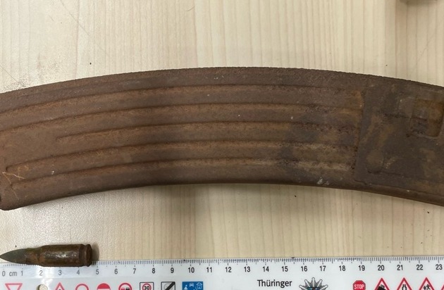 Nicht schlecht staunten Bauarbeiter auf der Baustelle des MalzQuartiers in Erfurt. Sie fanden bei Arbeiten ein gefülltes Magazin aus einer Waffe aus dem zweiten Weltkrieg. Das Magazin und die darin befindlichen Patronen verm. des Kalibers 7,92 x 33 mm waren stark verrostet. Das Magazin wurde durch die Polizei gesichert und in der weiteren Folge an die in Thüringen zuständige Delaborierungsfirma übergeben. Diese verbrachte es im Anschluss auf den dafür vorgesehenen Zerlegeplatz. (MK)
