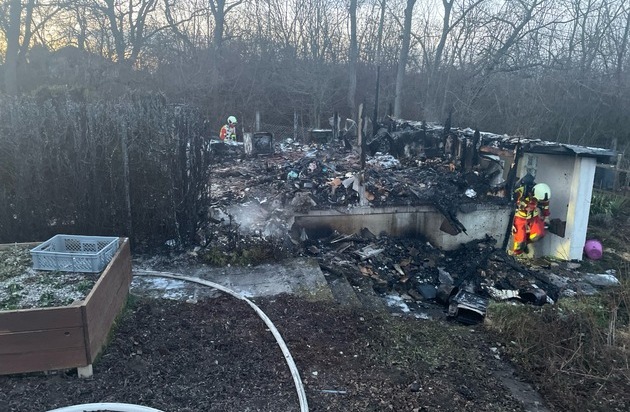 Freitagnachmittag geriet aus bisher ungeklärter Ursache in einer Kleingartenanlage Am Drosselberg ein Gartenhaus in Vollbrand. Dieses wurde trotz zügig eingeleiteter, mehrstündiger Löscharbeiten komplett zerstört. Die Schadenshöhe wird auf einen fünfstelligen Betrag geschätzt. Durch die Kriminalpolizei Erfurt wurden Spuren gesichert und Ermittlungen zur Brandursache aufgenommen. (AS)