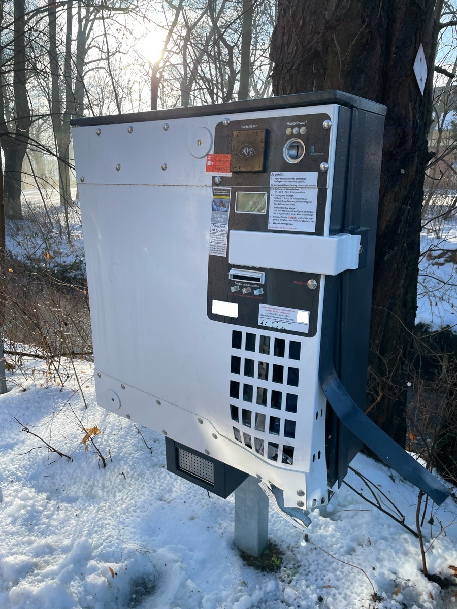 Wie am Dienstag gegen 10 Uhr bekannt wurde, kam es in der Kurstraße zu einem versuchten besonders schweren Fall des Diebstahls. Unbekannte hatten einen Sprengkörper in einem Zigarettenautomaten umsetzen lassen, um in das Innere zu gelangen. Durch die Detonation wurde der Automat nicht vollständig geöffnet und der oder die Täter entfernten sich ohne Beute in unbekannte Richtung.