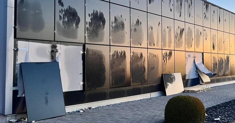 Auf einen betrieb in der Josef-Rodenstock-Straße hatten es Einbrecher am zurückliegenden Wochenende abgesehen. In der Zeit von Samstag 19.30 Uhr bis 20.30 Uhr ereignete sich die Tat, bei der drei Täter zunächst widerrechtlich das Grundstück betraten und sich in der weiteren Folge zum Firmengebäude begaben. Von diesem entfernten sie mehrere Solar-Panel und trennten die Außenwände auf, um in das Innere des Gebäudes zu gelangen. Hieraus wurde ersten Ermittlungen zufolge nichts entwendet. Es blieb ein Sachschaden im mittleren fünfstelligen Bereich zurück.