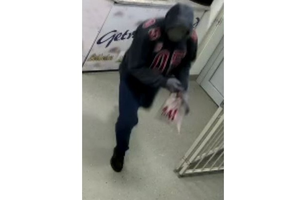 Freitagmorgen (17.10.2025) kurz nach 09:00 Uhr betrat ein maskierter Mann einen Getränkemarkt in der Meininger Straße in Römhild. Er drohte der Angestellten mit einem pistolenartigen Gegenstand und forderte sie auf, die Kasse zu öffnen. Danach verstaute er die Einnahmen in einer Tüte und in diesem Moment betrat ein Kunde das Geschäft. Der Zeuge bemerkte, was da vor sich ging und verließ die Räumlichkeiten sofort. Nachdem der Täter das gesamte Geld an sich genommen hat drohte er dem Zeugen, der mittlerweile vor der Tür stand, mit der Waffe und forderte ihn auf zu verschwinden. Der unbekannte Täter flüchtete schließlich durch die Hintertür. Glücklicherweise blieb die Angestellte und auch der Zeuge körperlich unverletzt. Die Polizei sucht derzeit mit Hunden und dem Hubschrauber nach dem Unbekannten. Zudem ist die Kriminalpolizei vor Ort, um Spuren zu sichern. Es werden dringend Zeugen, vor allem der Mann, der den Markt betrat, gebeten, sich umgehend bei der Polizei in Hildburghausen unter der Telefonnummer 03685 778-0 zu melden. Der Täter kann wie folgt beschrieben werden: - ca. 1,80 Meter groß - schlank - sprach akzentfreies deutsch - schwarze Hose - schwarze Schuhe - graue Skimaske - dunkle Jacke mit roter Aufschrift. Mit Beschluss des Amtsgerichtes Meiningen wird die Öffentlichkeit gebeten, die Suche nach dem Täter zu unterstützen.