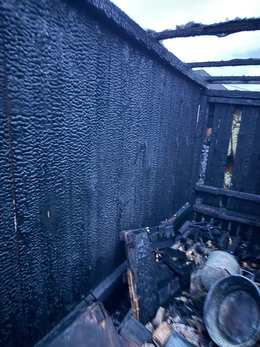 Die ersten Einsatzkräfte trafen gegen 15:00 Uhr an der Einsatzstelle ein. Vor Ort stand ein Abstellschopf aus Holz bereits im Vollbrand. Aufgrund der sehr geringen Entfernung zu einem angrenzenden Wohngebäude hatten die Flammen dieses bereits erreicht. Es bestand akute Gefahr eines Übergreifens auf den Dachstuhl des Wohngebäudes. Einsatzverlauf und Maßnahmen Umgehend wurde ein schneller Löschangriff eingeleitet, um eine weitere Ausbreitung des Feuers zu verhindern. Die Wasserversorgung erfolgte über einen Hydranten.