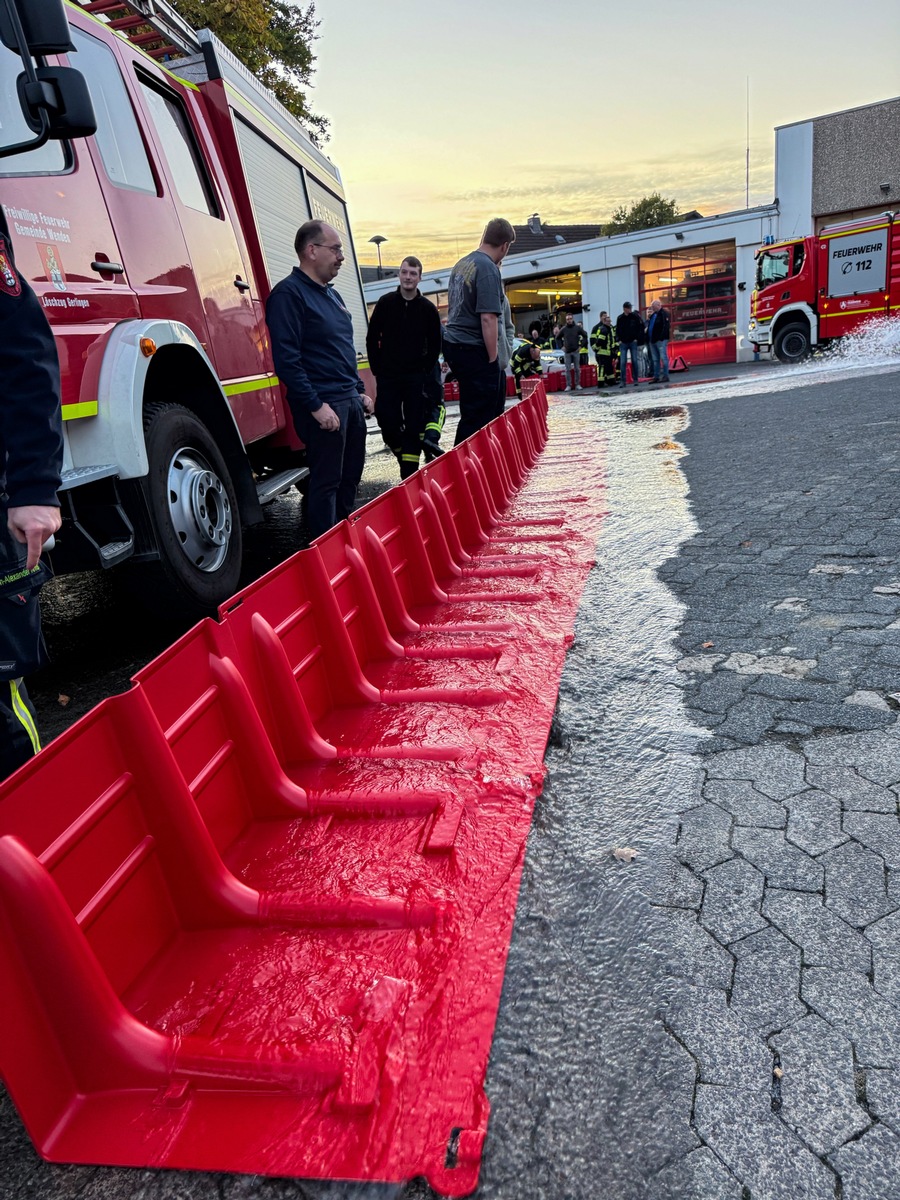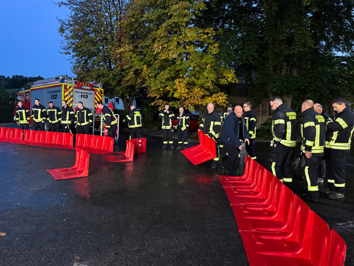 Starkregenereignisse und Hochwasserlagen haben in den vergangenen Jahren insbesondere den Wendener Ortsteil Ottfingen wiederholt stark getroffen. Um die Bürgerinnen und Bürger künftig noch besser zu schützen, hat die Gemeinde Wenden gemeinsam mit der Feuerwehr ein modernes Hochwasserschutzsystem beschafft. Insgesamt wurden rund 200 Meter eines mobilen Systems angeschafft, das derzeit im Feuerwehrgerätehaus Gerlingen eingelagert ist. Es zeichnet sich durch seine Vielseitigkeit aus: Neben dem klassischen Hochwasserschutz kann es auch für die Rückhaltung von kontaminiertem Löschwasser eingesetzt werden, dient als temporäres Wasserreservoir bei Wald- und Vegetationsbränden und ermöglicht es sogar, Fahrzeuge - insbesondere Elektrofahrzeuge - einzuschließen, um deren Batterien im Brandfall zu kühlen. Damit erweitert das System die technischen Möglichkeiten der Feuerwehr in besonderem Maße. Am 01.10.2025 erhielten über 60 Einsatzkräfte der Feuerwehr Wenden, Mitarbeitende des Bauhofs sowie Vertreterinnen und Vertreter der Verwaltung eine umfassende Einweisung in das System. Diese wurde durch ein Fachunternehmen durchgeführt, das für die technische Betreuung und Schulung zuständig ist. Dabei wurden nicht nur die Handhabung und der Aufbau demonstriert, sondern auch verschiedene Einsatzmöglichkeiten praxisnah erläutert. Mit der erfolgten Schulung ist das System nun einsatzbereit. Darüber hinaus bietet die Beschaffung auch eine Perspektive über die Gemeindegrenzen hinaus: Mehrere Kommunen im Kreis Olpe haben signalisiert, mittelfristig ebenfalls in diese Technik zu investieren. Eine Kommune ist bereits diesen Schritt gegangen. Auch der Kreis Olpe hat Bereitschaft erkennen lassen, weitere Strecken des Systems für den überörtlichen Einsatz zu beschaffen. Dadurch entsteht langfristig die Möglichkeit, Material im Bedarfsfall flexibel zwischen den Kommunen auszutauschen und sich gegenseitig zu unterstützen. "Mit dieser Investition haben wir die Sicherheit unserer Bürgerinnen und Bürger noch einmal spürbar gestärkt. Gleichzeitig legen wir den Grundstein für eine kreisweite Zusammenarbeit, die bei künftigen Starkregen- und Hochwasserlagen einen echten Mehrwert bringen kann", betont der Leiter der Feuerwehr der Gemeinde Wenden, Joachim Hochstein.