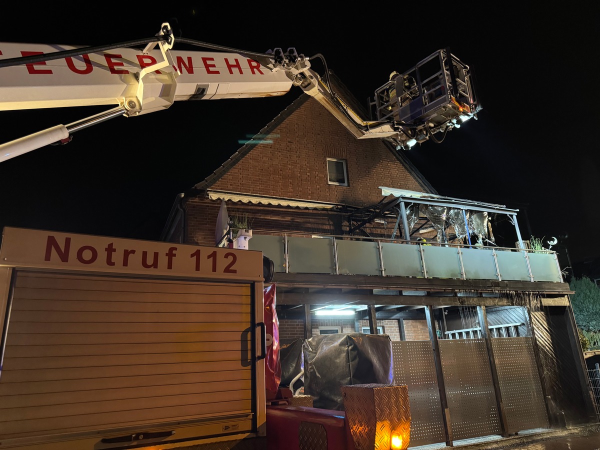 Tönisvorst, 17. Dezember 2025 - Gestern Abend gegen 21:55 Uhr geriet eine Balkonüberdachung in der Straße Pastorsbusch im Tönisvorster Stadtteil St. Tönis in Brand. Während die Feuerwehr vor Ort war, lief noch ein größerer Einsatz an der Willicher Straße. Dank des schnellen Eingreifens der Einsatzkräfte konnte der Brand rasch unter Kontrolle gebracht und das Übergreifen auf das Wohnhaus verhindert werden.