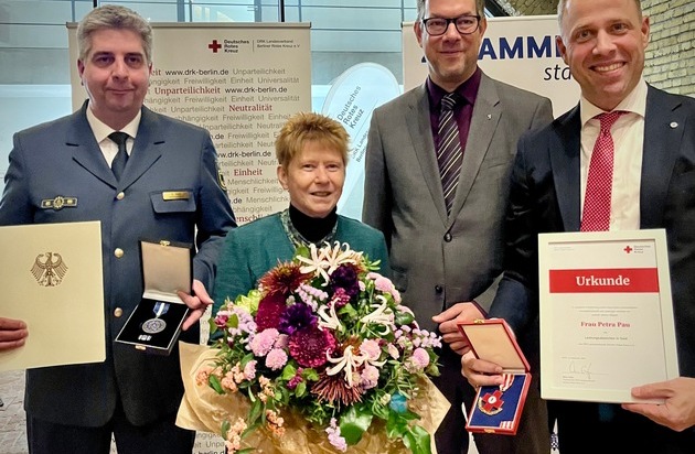 THW LVBEBBST: Doppelte Ehrung für Petra Pau - DRK Berlin und THW würdigen langjähriges ehrenamtliches Engagement