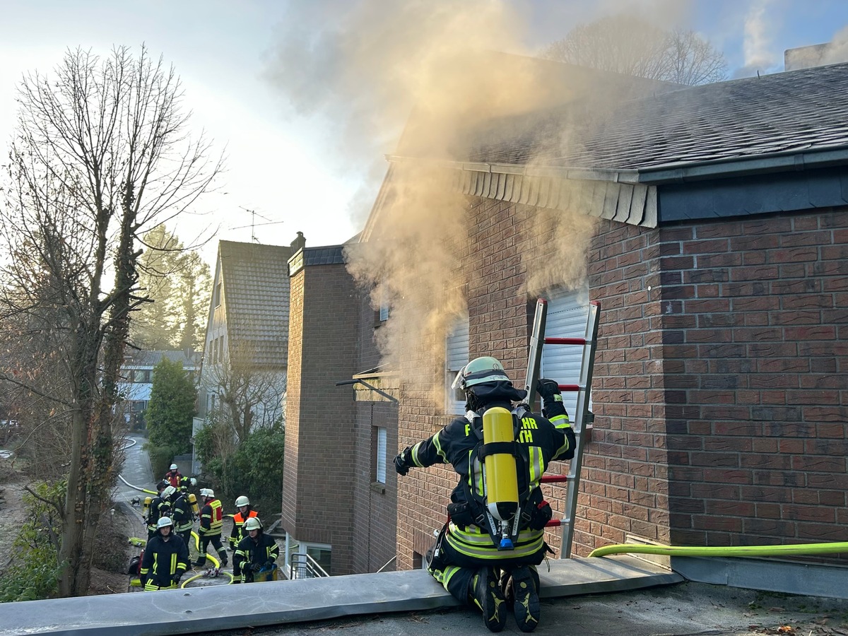 FW Rösrath: Gebäudebrand in Kleineichen: Feuerwehr Rösrath im Großeinsatz