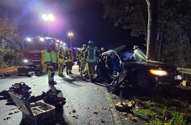 Um 23:08 Uhr wurde die Feuerwehr Datteln zu einem im Graben befindlichen PKW auf der Recklinghäuser Straße alarmiert. Beim Eintreffen stellte sich heraus, dass der PKW neben einem Baum stand, auf der Fahrerseite massive Verformungen aufwies und der Fahrer im Fahrzeug eingeklemmt war. Aufgrund der Gesamtsituation entschied man sich in Absprache mit dem Rettungsdienst für eine Crashrettung, was bedeutet, dass der Patient schnellstmöglich aus dem verunfallten Fahrzeug befreit wird. Dazu wurde die Einsatzstelle in zwei Bereich gegliedert, so dass der ebenfalls mitalarmierte Freiwillige Löschzug auf der einen Seite des PKW und die hauptamtliche Wache parallel auf der anderen Seite mit entsprechrnden Rettungsgeräten arbeiteten. Der Patient wurde nach der Rettung in ein Recklinghäuser Krankenhaus der Maximalversorgung verbracht. Bei weiteren Fragen verweisen wir an die Pressestelle der Polizei Recklinghausen.