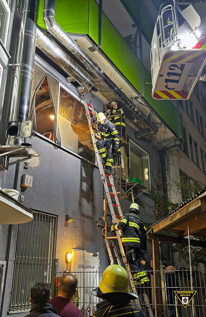 In den Freitagabendstunden gingen mehrere Anrufe in der Leitstelle München ein, in der die Personen von Flammen auf dem Dach eines Wohn- und Geschäftshauses berichteten. Daher wurden sofort mehrere Einheiten von Feuerwehr und Rettungsdienst zu der gemeldeten Adresse alarmiert. Noch während der Anfahrt gingen auch noch Meldungen über einen Brand in einer Gaststätte ein. Vor Ort stellte sich nach der ersten Erkundung schnell heraus, dass von einem Ofen aus ein Brand in den Edelstahlkamin übergegangen war. Der Inhaber der Gaststätte hatte zwar bereits Löschmaßnahmen in den Räumlichkeiten durchgeführt, konnte aber den Brand im Kamin nicht erreichen. Die Einsatzkräfte der Feuerwehr führten die Brandbekämpfung dann im Außenkamin weiter. Mit Kohlendioxid löschten sie die Flammen und säuberten den Kamin von den Brandresten mit dem Kaminkehrerwerkzeug. Ein Querzug konnte so nicht mit dem Löschmittel erreicht werden, sodass er durch die Einsatzkräfte demontiert und im Anschluss das Brandgut abgelöscht werden musste. Ein extra hinzugezogener Kaminkehrer begutachtete nach den Löschmaßnahmen den Kamin. Dieser darf wohl nicht mehr genutzt werden, was dann einen erheblichen Schaden bedeuten wird.