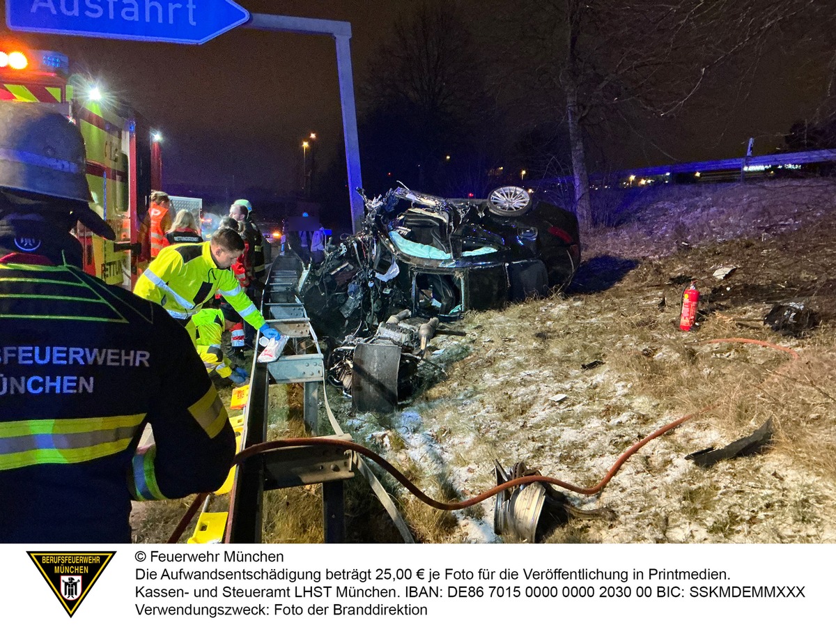 Die eintreffenden Kräfte der Feuerwehr und des Rettungsdienstes intensivierten die Maßnahmen, leuchteten die Unfallstelle aus und stellten den Brandschutz sicher. Zwischenzeitlich musste die Autobahn in einer Fahrtrichtung komplett gesperrt werden. Nach einer Behandlung vor Ort wurde der Mann schwer verletzt in Begleitung eines Notarztes in den Schockraum einer Münchner Klinik gebracht.