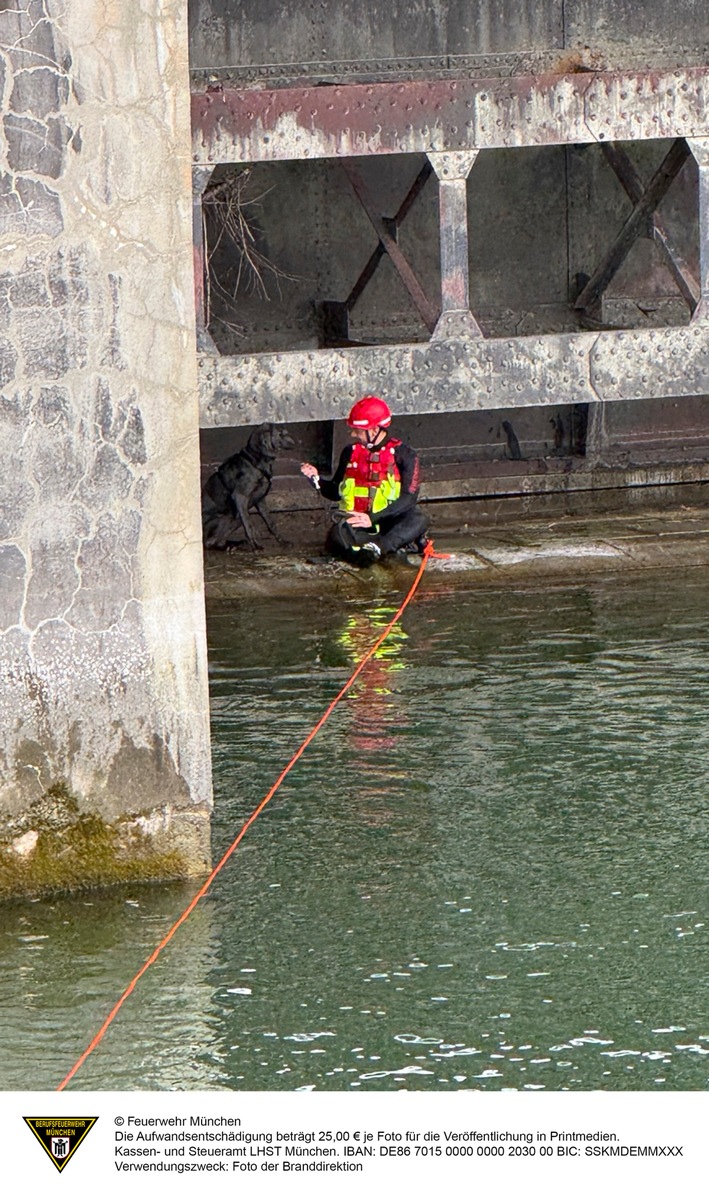 FW-M: Vier Pfoten auf Abwegen - Feuerwehr rettet Hund aus Isar (Oberföhring)
