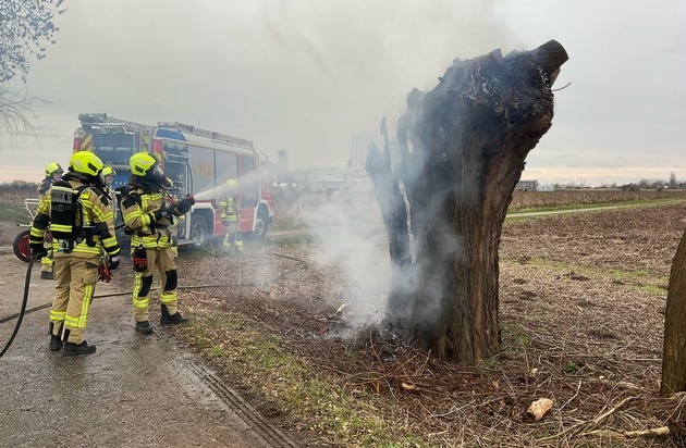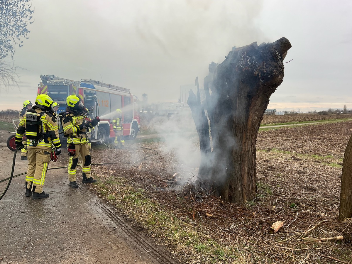 Am Sonntag Nachmittag wurde auf dem Brother Weg in Menzelen-Ost ein brennender Baum gemeldet. Beim Eintreffen der Einsatzkräfte brannte eine Kopfweide in voller Ausdehnung. Ein Trupp unter umluftunabhängigem Atemschutz unternahm die ersten Löschmaßnahmen mittels S-Rohr. Im weiteren Einsatzverlauf wurden Baum dann mittels Motorsäge gefällt und anschließend mit Löschschaum abgelöscht. Im Einsatz waren die Einheiten aus Menzelen und Alpen.