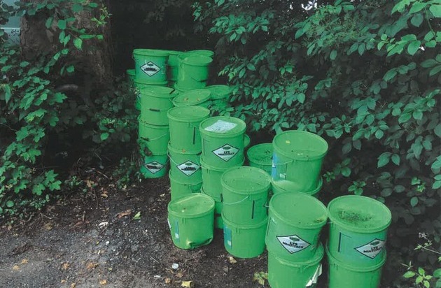 Die Polizei sucht Zeugen, die den "Entsorgungsvorgang" beobachtet haben oder Hinweise zur Herkunft der Eimer geben können.