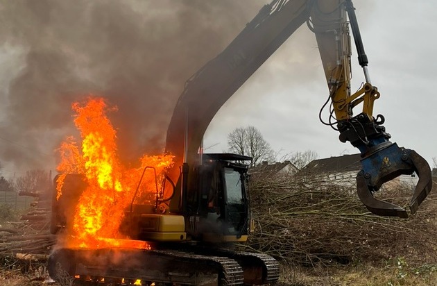 FW Bremerhaven: Bagger im Vollbrand gelöscht