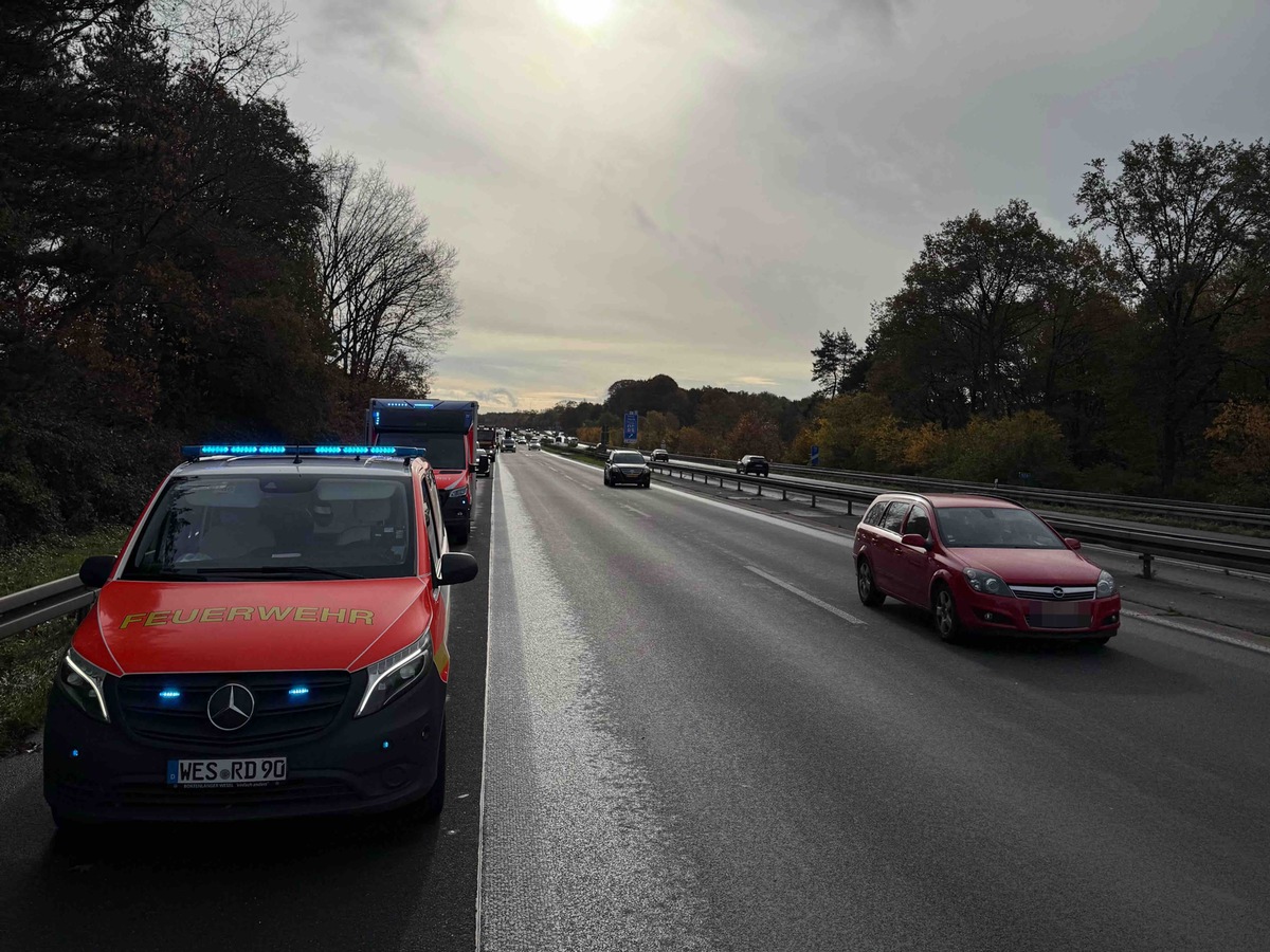 Die Einheiten Hünxe, Bruckhausen und Drevenack wurden am 2. November 2025 um 10:41 Uhr mit dem Einsatzstichwort "Person eingeklemmt" auf die BAB 3 in Fahrtrichtung Niederlande alarmiert.