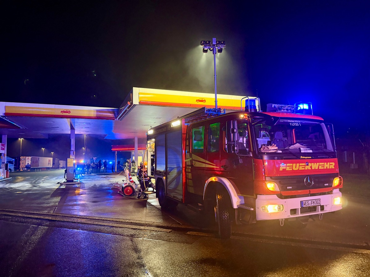 FW Hünxe: Brand an Tankstelle - Feuerwehreinsatz auf Rastplatz