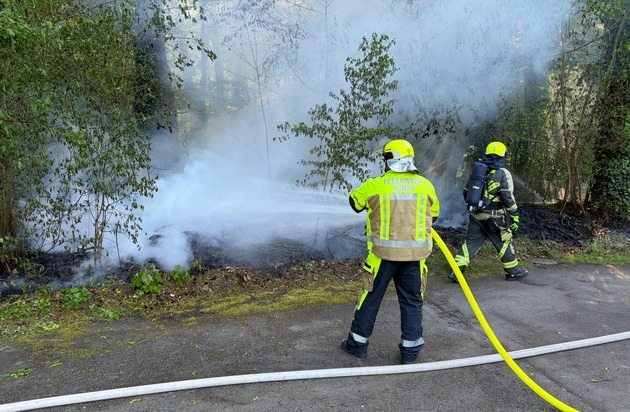 An der Einsatzstelle war eine etwa 80 Quadratmeter große Fläche in einem Waldstück in Brand geraten. Das Feuer, das sich auf das Unterholz ausgebreitet hatte, wurde mit zwei Strahlrohren gelöscht. Abschließend wurde der Bereich mit einer Wärmebildkamera kontrolliert.