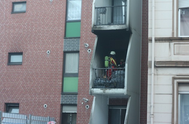 FW Düren: Zimmerbrand mit Balkonfeuer - Personen durch Feuerwehr in Sicherheit gebracht