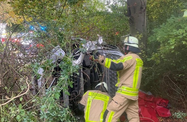(FW Grevenbroich) - Die Feuerwehr Grevenbroich wurde am heutigen Dienstag gegen 13:10 Uhr zu einem Verkehrsunfall im Kreuzungsbereich der Landstraße 116 und der Grubenrandstraße alarmiert. Ein Pkw war augenscheinlich von der Fahrbahn abgekommen, auf die Seite gestürzt und im Gebüsch neben der Fahrbahn liegen geblieben.