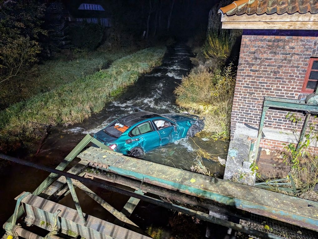 FW-ROW: Nächtlicher Unfall in Rotenburg: PKW landet in der Wiedau