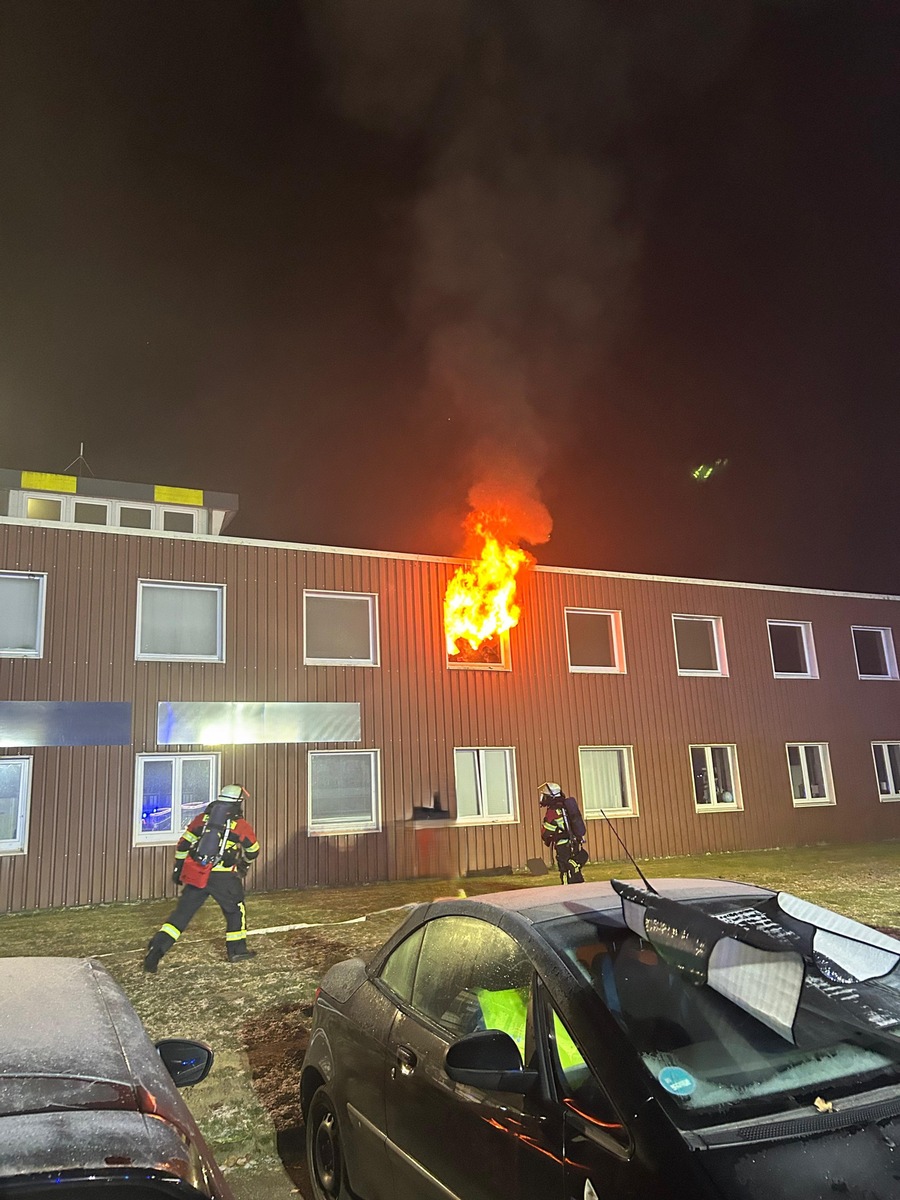In der Nacht von Samstag auf Sonntag kam es in einem Geschäftsgebäude am Rotenburger Flugplatz zu einem Zimmerbrand. Die Feuerwehren Rotenburg, Waffensen und Borchel wurden umgehend alarmiert und rückten bei deutlichen Minusgraden mit insgesamt neun Fahrzeugen und rund 50 Einsatzkräften zur Einsatzstelle aus.