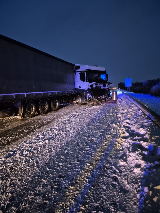 Ein Sattelzug war auf glatter Fahrbahn verunglückt. Dabei wurde der Dieseltank beschädigt. Die Feuerwehr musste den Tank zunächst abdichten, um eine weitere Ausbreitung des Kraftstoffs zu verhindern. Im weiteren Verlauf wurde der Diesel aus dem Tank abgepumpt. Der bereits ausgelaufene Kraftstoff wurde mit Bindemittel aufgenommen. Ob Personen zu Schaden gekommen sind, können keine Angaben gemacht werden.