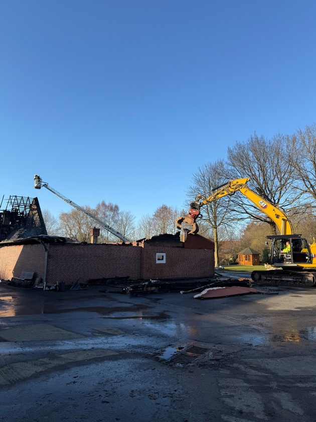 Besondere Herausforderungen ergaben sich durch ein im Gebäude integriertes Schwimmbad sowie die aufwendige Dachkonstruktion. Zur Brandbekämpfung aus der Höhe wurden zudem zwei Drehleitern aus Zeven und Harsefeld eingesetzt. Ein nachalarmierter Bagger sorgte dafür, dass in dem angrenzenden Gebäudekomplex alle Glutnester gelöscht werden konnten.