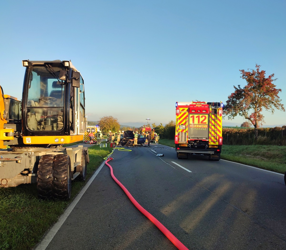 - Einsatzstichwort: H2 Verkehrsunfall Person eingeklemmt - Datum: 02.10.2025 - Uhrzeit: 07:52 Uhr - Einsatzort: L219 Oberdorf -> Litzelstetten - Eingesetzte Kräfte: Hauptamtliche Wache, Abteilung Litzelstetten, Abteilung Dingelsdorf, Abteilung Dettingen - Fahrzeuge: 6/11, 6/46, 6/52, 4/44, 5/42, 9/42-1