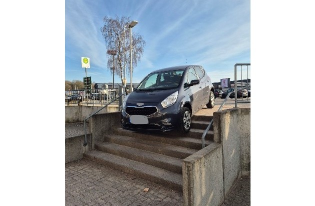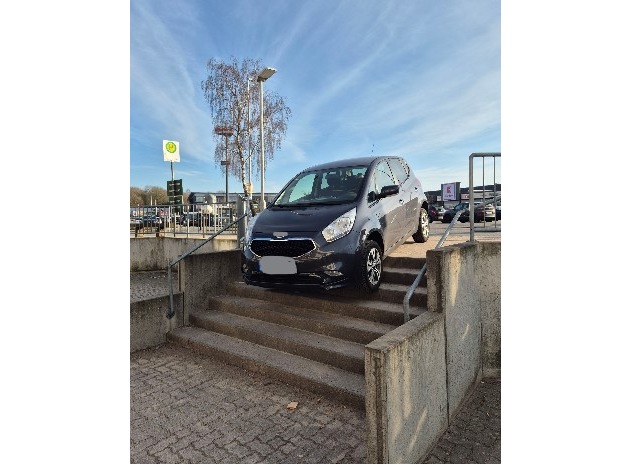 Am Freitagnachmittag (06.03.2026) ist die Fahrerin eines PKW falsch abgebogen und steckte auf einer Treppe fest. Verletzt wurde niemand. Freitagnachmittag um 16.20 Uhr befuhr eine Fahrzeugführerin die Mergenthaler Straße im Gewerbegebiet Raisdorf. Um auf den Parkplatz eines Drogeriemarktes zu gelangen, bog die Dame fälschlicherweise ein wenig zu früh ab. Als sie ihren Fehler bemerkte, steckte sie bereits auf der Treppe fest. Es kam niemand zu schaden.