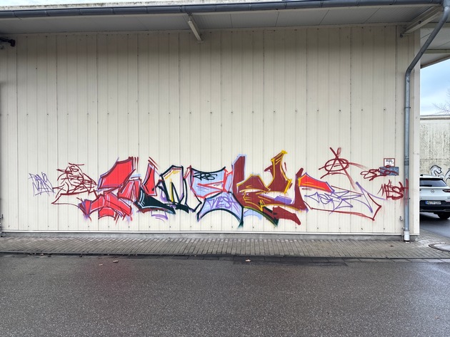 Unbekannte beschmierten in der Zeit zwischen Donnerstag, 18 Uhr, und Freitag, 08 Uhr, die Außenwand eines Einzelhandelsmarkts in der Bahnhofstraße mit Graffiti. Das Graffiti in Form von Schriftzügen wurde in den Farben Rot, Braun, Lila und Hellblau auf einer Fläche von 2 Meter auf 10 Meter aufgesprüht. Durch die Farbschmiererei entstand ein Sachschaden von etwa 2.000 Euro.
