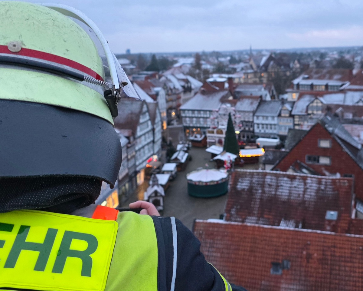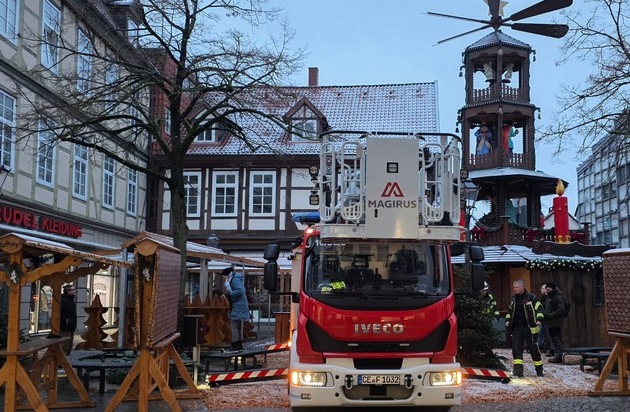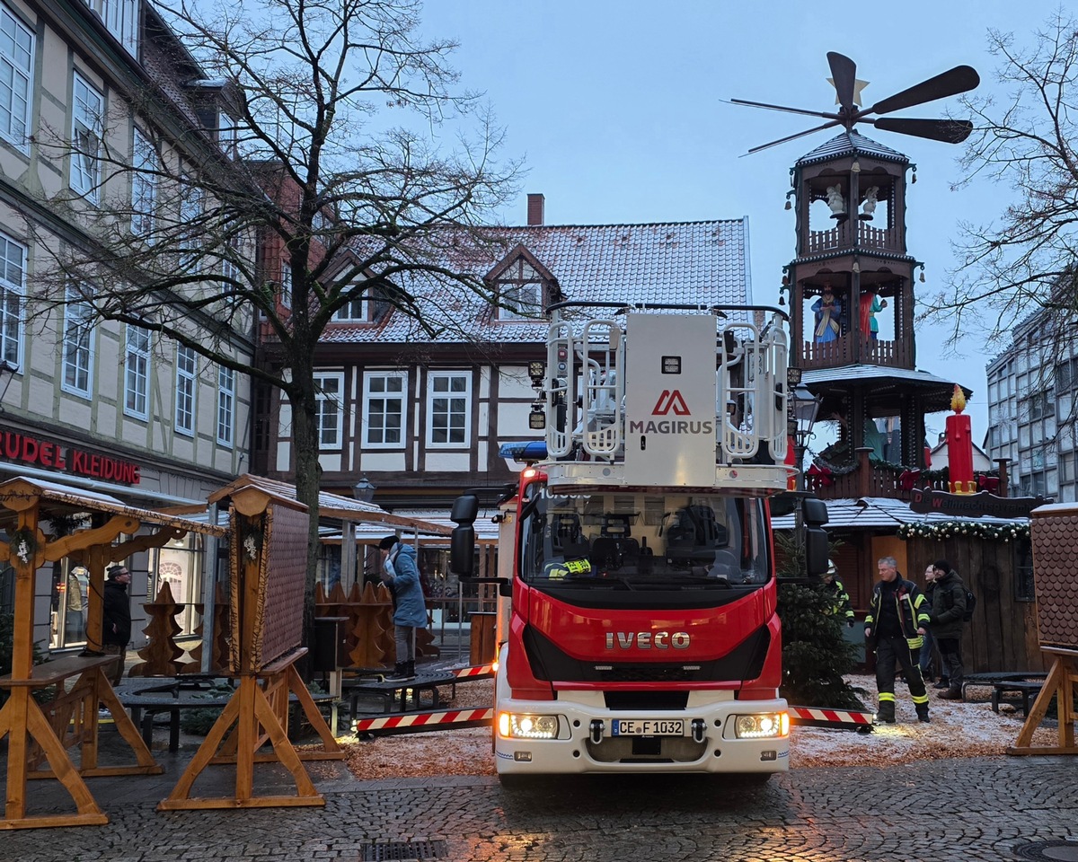 FW Celle: Mit der Drehleiter über den Celler Weihnachtsmarkt