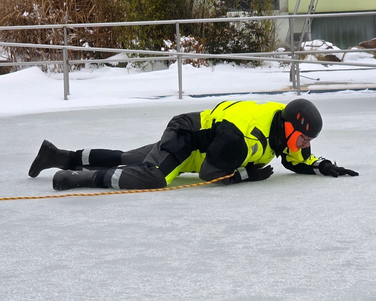 FW Celle: Feuerwehr warnt vor dem Betreten von Eisflächen - Eisretter der Feuerwehr Celle einsatzbereit - Feuerwehr übt den Ernstfall im Celler Badeland!