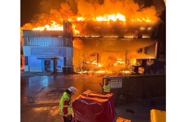 FW Minden: Großbrand einer Lagerhalle beschäftigt die Feuerwehr zwei Tage