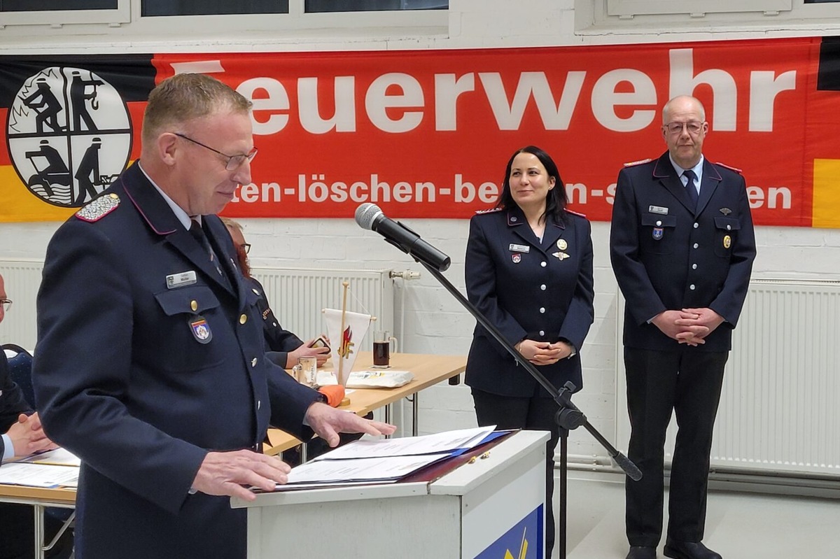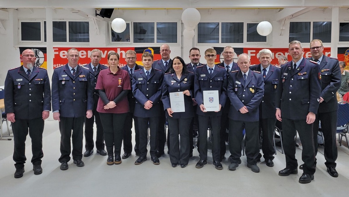 50 Aktive leisten über 6700 Stunden - Ehrungen für mehrere 50-jährige Jubilare Reibungslos verlief im Sommer 2025 der Führungswechsel in der Ortsfeuerwehr Emmerstedt, der nach entsprechend geplanten Neuwahlen vollzogen wurde. Der bisherige Ortsbrandmeister Matthias Müller teilte vorab zeitnah mit, dass er für eine weitere Wahlperiode nicht mehr zur Verfügung steht. Und somit durfte Manuel Schrader dann auch erstmals in seiner Funktion des Ortsbrandmeisters zur Jahreshauptversammlung in die Emmerstedter Mehrzweckhalle einladen. In seinem Jahresbericht ließ Manuel Schrader dann das Jahr 2025 Revue passieren. Mit 72 Einsätzen im vergangenen Jahr - 12 davon im eigenen Ausrückebereich - sei zwar gegenüber dem Vorjahr ein leichter Rückgang zu verzeichnen, aber dennoch gab es auch wieder mehrere größere Schadensereignisse. Ein größerer Flächenbrand in der Emmerstedter Feldmark sei hier zu nennen. Innerhalb kürzester Zeit wurden zur Unterstützung mehrere Tanklöschfahrzeuge aus allen umliegenden Ortschaften Emmerstedts alarmiert. Das Zusammenspiel untereinander ist dabei sehr wichtig. Stets konnte es - nicht zuletzt auch aufgrund vieler vorheriger und gemeinsamer Übungsdienste - erfolgreich unter Beweis gestellt werden. Zum Stand eines neu zu beschaffenden Löschgruppenfahrzeuges LF 10 teilte Manuel Schrader mit, dass Anfang Dezember 2025 die Zwischenabnahme stattfand und das Fahrzeug mittlerweile vom Fahrzeugaufbauer Firma Rosenbauer aus Luckenwalde abgeholt wurde. Die offizielle Übergabe an die Ortsfeuerwehr Emmerstedt wird allerdings erst im Frühjahr 2026 durchgeführt. Begonnen haben die Planungen zur Beschaffung des LF 10 im November 2022. Aktuell befindet sich das LF 10 in der dafür vorgesehenen Zeltgarage neben dem Feuerwehrgerätehaus in Emmerstedt und es finden intensive Einweisungen für Fahrer und Maschinisten statt. Alle aktiven Mitglieder erhalten weiterhin Schulungen an den sonstigen - teilweise neuen - Gerätschaften. Zum Tagesordnungspunkt Ehrungen gab es gleich mehrere bemerkenswerte Auszeichnungen. Abschnittsleiter Nord Stefan Müller hatte die ehrenvolle Aufgabe, die Kameraden Karsten Dierking und Ralf Holste für 50 Jahre aktive Dienste auszuzeichnen. Beide sind in den 70er Jahren in die 1973 gegründete Jugendfeuerwehr eingetreten und sind noch immer in der Einsatzabteilung. Beide erhielten nun das Feuerwehrehrenzeichen des Landes Niedersachsen. Der ehemals aktive Kamerad Rüdiger Schrader blickt ebenfalls auf eine 50-jährige Mitgliedschaft zurück und erhielt dafür das Abzeichen des Landesfeuerwehrverbandes Niedersachsen. Besondere Auszeichnungen erhielten außerdem die aktiven Mitglieder Jacqueline Balzereit und Michael Kauth. Beide sind neben ihren Tätigkeiten in der Ortsfeuerwehr (Gruppenführerin/Zugführer) auch seit Jahren in der Feuerwehr Kreisausbildung des Landkreises Helmstedt tätig. Abschnittsleiter Stefan Müller überreichte ihnen dafür die Ehrennadel des Kreisfeuerwehrverbandes Helmstedt (Jacqueline Balzereit in Bronze - Michael Kauth in Silber). Die Kameraden David Zdralek, Jean und Quentin Kriependorf haben ihre Grundausbildung erfolgreich abgeschlossen und wurden daher zu Feuerwehrmännern befördert. In die Einsatzabteilung aufgenommen wurde Leon Pinkernelle. Er ist bereits ausgebildeter Feuerwehrmann und aus privaten Gründen von Wolsdorf nach Emmerstedt gezogen. Die Kassenverwalterin Heidrun Eggeling, der Gerätewart Jürgen Eggeling und der Sicherheitsbeauftragte Klaus Schrader wurden nach entsprechender Wahl einstimmig in ihren Ämtern bestätigt. Jugendwart Patrick Eggeling berichtete in seinem Jahresbericht der Jugendfeuerwehr Emmerstedt ebenfalls von einem ereignisreichen Jahr. Teilnahme an Wettbewerben auf Stadt- und Kreisebene sowie am einwöchigen Kreiszeltlager in Grasleben, Badespaß im Juliusbad und Besichtigung der Werkfeuerwehr im VW-Werk in Wolfsburg, um nur einige Unternehmungen zu nennen. Die Jugendfeuerwehr Emmerstedt hatte zum Jahresende 2025 einen Mitgliederstand von 12 Jugendlichen, davon 4 Mädchen. Kinderfeuerwehrwartin Daniela Müller blickte ebenfalls auf ein spannendes Jahr mit 20 Kindern zurück. Der einjährige Geburtstag wurde am 21. September 2025 mit den Eltern der "Kleinen Löschmeister" gefeiert. Das Highlight vor den Sommerferien bildete das zweitägige Zeltlager der Kinderfeuerwehren der Stadt Helmstedt mit über 60 Teilnehmern in Barmke. Bei Spiel, Spaß, einer Dorfrallye sowie Lagerfeuer mit Stockbrot kamen die Kinder auf ihre Kosten, konnten neue Kontakte knüpfen und das Gemeinschaftsgefühl stärken. Sechs Kinder nahmen mit Erfolg an der Abnahme des Brandflohs, dem Leistungsabzeichen für Kinderfeuerwehren in Niedersachsen, teil und die ersten 3 Kinder haben aufgrund ihres Alters in die Jugendfeuerwehr gewechselt. Zum Abschluss der Versammlung hatte Ortsbrandmeister Manuel Schrader noch die ehrenvolle Aufgabe, dem bisherigen Ortsbrandmeister Matthias Müller und seiner Frau Daniela Müller großen Dank zu sagen. Dank an Matthias für über 26 Jahre Kommandotätigkeit und Dank an Daniela, dass sie stets hinter ihm stand und den "Rücken freigehalten und gestärkt" hat. Unter lang anhaltendem Beifall nahmen beide ein kleines Präsent und Blumen entgegen.