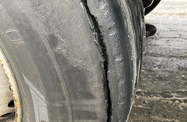 Die Verkehrsspezialisten vom Regionalen Verkehrsdienst Marburg-Biedenkopf führten letzte Woche Montag, den 24. November, Kontrollen des gewerblichen Güterverkehrs durch. Auf der Bundesstraße 3 in Höhe Marburg geriet ein Sattelzug, der mit Holzstämmen beladen war, ins Visier der Beamten. Dieser war augenscheinlich überladen. Zur Überprüfung des Gewichts musste der Holztransporter auf die Waage. Hier staunten die Polizisten nicht schlecht: Die Waage zeigte einen Fehler an. Demnach war der Sattelzug deutlich zu schwer. Im Ergebnis stellten die Verkehrsexperten eine Überladung von knapp 13 Tonnen fest. Die Ordnungshüter untersagtem dem Fahrer die Weiterfahrt und ordneten an, die zu viel transportierten Holzstämme abzuladen. Auf den Fahrer und die Halterfirma kommen nun Bußgeldverfahren zu. Auf dem Messeplatz in Marburg kontrollierten die Verkehrsexperten einen weiteren Sattelzug, mit einem beschädigten Hinterreifen. Beim genauen Hinschauen war die darunterliegende Schicht zu sehen. Eine Untersagung der Weiterfahrt, ein Reifenwechsel sowie ein eingeleitetes Bußgeldverfahren gegen den Fahrer waren die Folge.