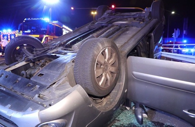 Am Abend des 1. Oktober wurden Feuerwehr und Rettungsdienst zu einem Verkehrsunfall alarmiert. Da zunächst von mehreren Verletzten ausgegangen werden musste, rückten neben einem Notarzt auch mehrere Rettungswagen aus. Vor Ort stellte sich heraus, dass aus bislang ungeklärter Ursache ein Citroën Berlingo und ein Mercedes GLC kollidiert waren. Der Citroën überschlug sich und blieb auf dem Dach liegen. Der 47-jährige Fahrer wurde dabei verletzt und in seinem Fahrzeug eingeschlossen. Alle weiteren Unfallbeteiligten wurden durch den Rettungsdienst untersucht, blieben jedoch augenscheinlich unverletzt. Die Feuerwehr setzte hydraulische Rettungsgeräte ein und befreite den Fahrer aus dem verunfallten Fahrzeug. Anschließend wurde er notärztlich versorgt und in ein Krankenhaus transportiert. Zudem banden die Einsatzkräfte auslaufende Betriebsmittel. Die Polizei hat die Ermittlungen zur Unfallursache aufgenommen. Im Einsatz waren 36 Einsatzkräfte der Feuer- und Rettungswachen Albertstadt, Altstadt und Übigau, der Rettungswachen Friedrichstadt, Löbtau und Pieschen sowie der B-Dienst und der Organisatorische Leiter Rettungsdienst.