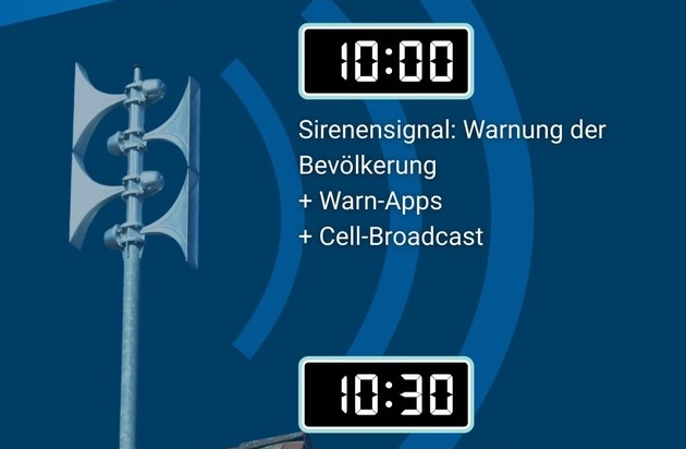 In jeder Stadt und Gemeinde wird um 10:00 Uhr der Warnton "Warnung der Bevölkerung" sowie um 10:30 Uhr "Entwarnung" über die Sirenen abgespielt.