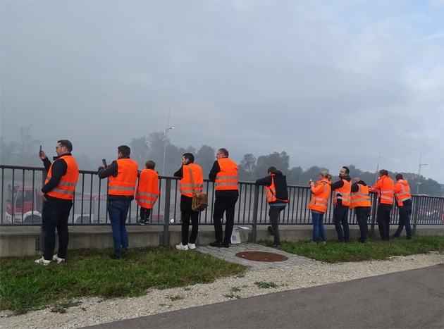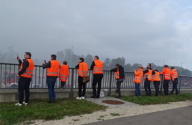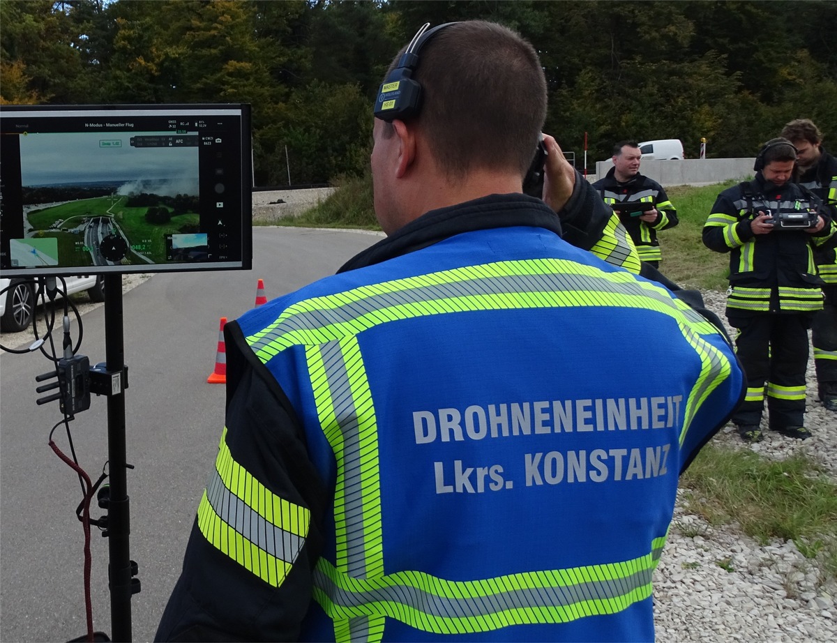 Die Bürgermeister der Gemeinden, Dr. Wolfgang Zoll, Reichenau und Stefan Friedrich, Allensbach und auch die beiden Kandidaten der Bürgermeisterwahl Reichenau Mario Streib und Philipp Stolz waren als Zuschauer dabei und verfolgten, betreut von dem Leiter des Straßenbauamtes Daniel Schrodin und Pressesprecher Thomas Baumgartner, interessiert den Übungsverlauf.