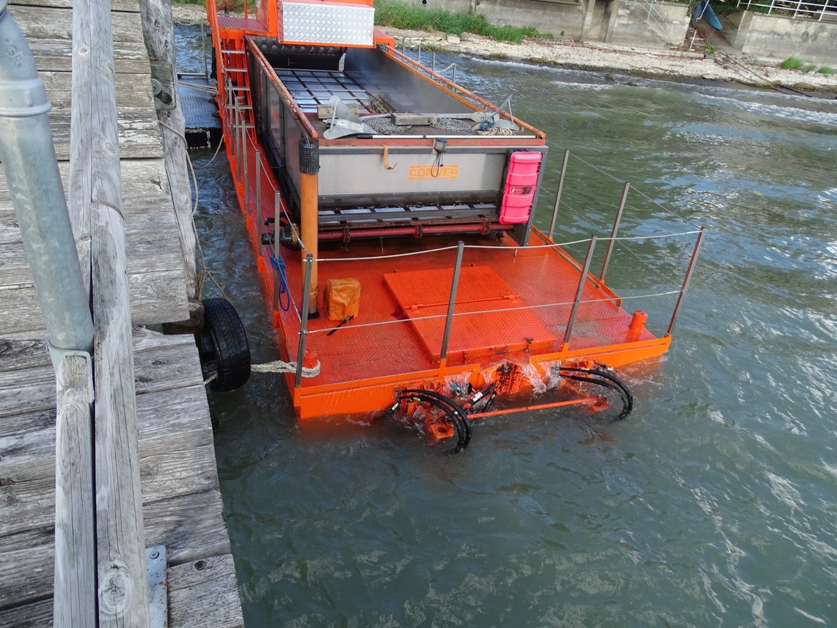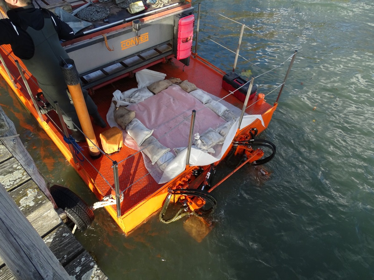Die Integrierte Leitstelle Konstanz alarmierte um 15:10 Uhr die Freiwillige Feuerwehr Reichenau zur Unterstützung der Ölwehr per Meldeempfänger. Beim Eintreffen der Feuerwehr wurde ein Mähschiff (Seekuh), welches im hinteren Bereich (Motorraum) durch den starken Wellenschlag aufgrund des Sturmereignisses mit ca. 5 m³ Wasser vollgelaufen und abgesunken war, vorgefunden.