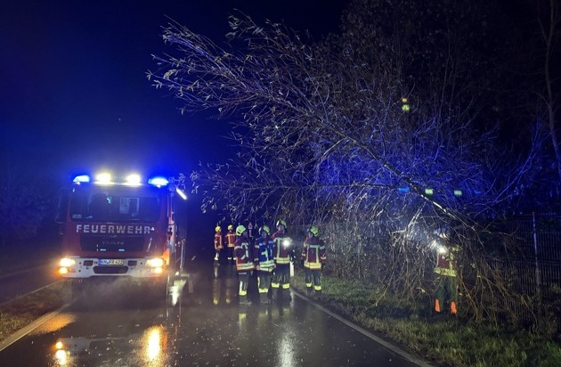 In den frühen Morgenstunden des Mittwochs, 26.11.2025, entdeckten Passanten auf der Gemeindeverbindungsstrasse neben der Bahnstrecke im Ortsteil Rau-Lindenbühl einen Baum welcher in den Zaun gefallen war und habseitig auf die Fahrbahn ragte. Sie riefen die Feuerwehr zu Hilfe.