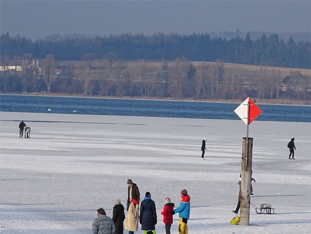 Die Feuerwehr warnt eindringlich vor dem unvorsichtigen Betreten der Eisflächen. Die Eisflächen des Gnadensees sind nicht überall tragfähig gefroren. In Richtung Seemitte und an vielen exponierten Stellen unweit des Ufers ist die Eisschicht stellenweise sehr dünn und nicht tragfähig. Dringend abgeraten wird auch vor dem Überqueren des Gnadensees zwischen Reichenau und Allensbach.
