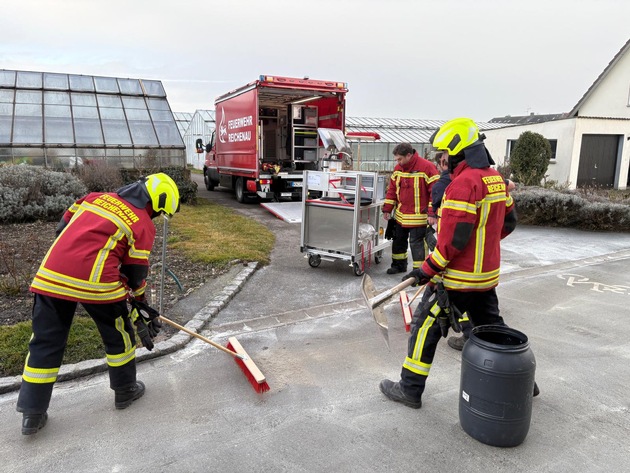Nach einer Anlieferung bei einem Gärtnerbetrieb per LKW am Dienstagmittag, 10.02.2026, im Ortsteil Reichenau-Mittelzell entdeckte der Betriebsleiter Öl- bzw. Diesel-Schlieren auf der Zufahrtsstrasse zum Betrieb. Die Feuerwehr wurde zur Hilfe gerufen.