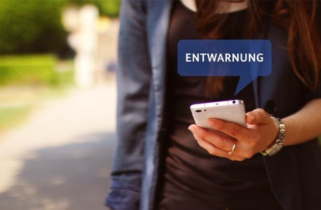 Eine Entwarnung über Cell Broadcast ähnelt optisch einer Warnmeldung, ist jedoch kürzer und trägt im Betreff die eindeutige Kennzeichnung "ENTWARNUNG" beziehungsweise "ALL CLEAR". Sie enthält keinen Link zur ursprünglichen Warnmeldung und ist für sechs Stunden im Bundeswarnportal einsehbar. Um Lärmbelästigungen zu vermeiden, werden Entwarnungen automatisch in der niedrigsten Warnstufe 3 versendet, weshalb Nutzerinnen und Nutzer diese Warnstufe auf ihren Geräten aktivieren sollten. Je nach Betriebssystem kann die Entwarnung mit unterschiedlichen Signaltönen ausgegeben werden. Voraussetzung für eine geräuscharme Entwarnung ist zudem die aktuellste Softwareversion des Smartphones, da ältere Versionen unter Umständen den lauteren Standard-Cell-Broadcast-Ton nutzen.