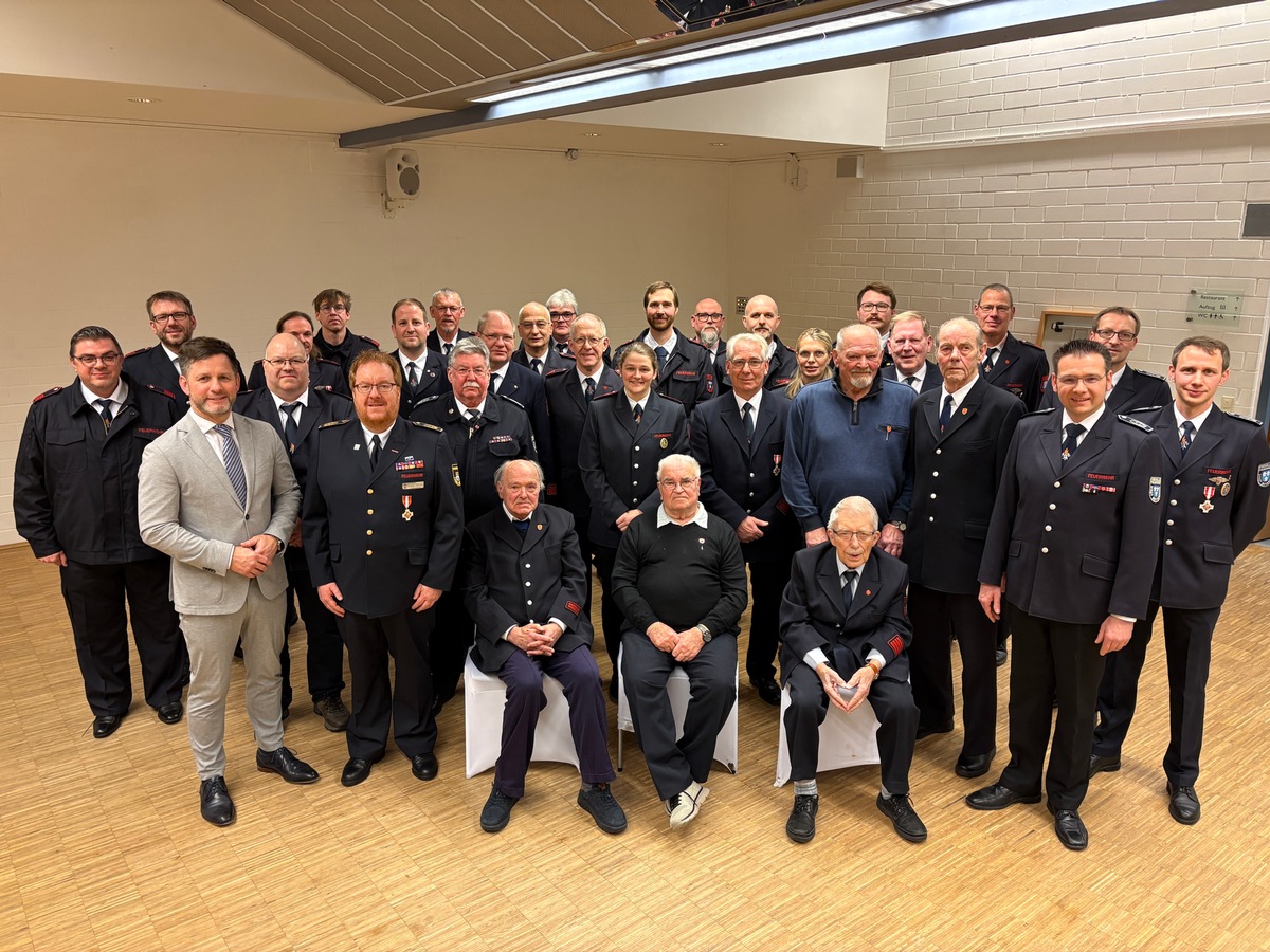 Für langjährige Mitgliedschaften wurden zudem Sonderauszeichnungen des Verbandes der Feuerwehren NRW e. V. überreicht: in Silber für 40 Jahre an Matthias Berg, Stefan Dewenter, Arnold Dunschen, Franz Lavarino und Marc Schrick, in Gold für 50 Jahre an Rudolf Berg, Günter Konzek, Ludwig Kuhn und Manfred Schade, in Gold für 60 Jahre an Hans-Lorenz Vössing und in Gold für beeindruckende 70 Jahre Mitgliedschaft an Josef Vössing.