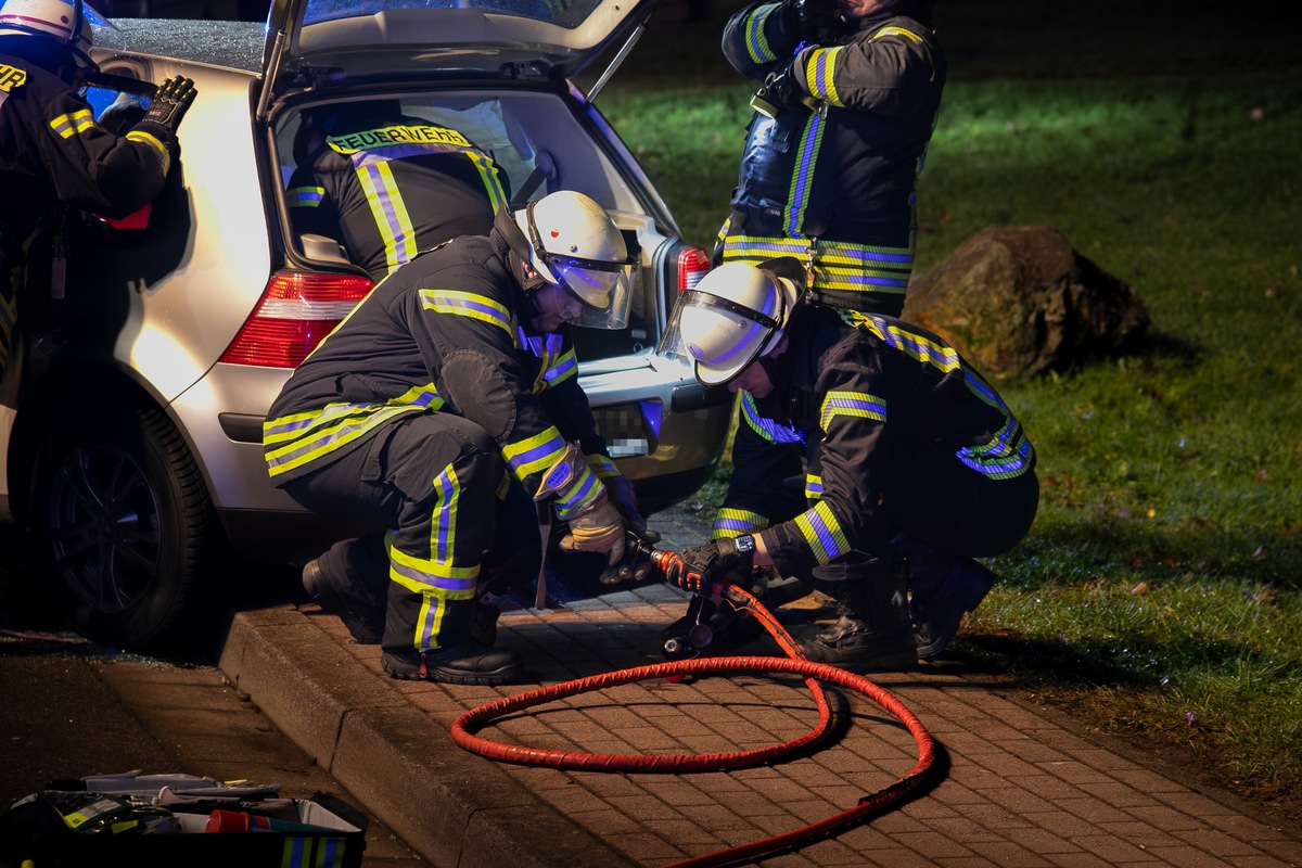 Den Unfallopfern eilten die Feuerwehr Neunkirchen mit Kräften aus den Löschbezirken Neunkirchen-Innenstadt und Wiebelskirchen, zwei Rettungswagen von Feuerwehr und Arbeiter-Samariter-Bund sowie die Polizei zu Hilfe. Nach der Absicherung der Unfallstelle und der medizinischen Erstversorgung aller drei Unfallopfer konzentrierten sich Feuerwehr und Rettungsdienst voll und ganz auf die Befreiung der schwerverletzten Beifahrerin aus dem Volkswagen. In enger Rücksprache zwischen Rettungsdienst und Feuerwehr wurde die Verletzte so schonend wie möglich aus dem Wrack befreit. Für die Rettung der Frau entschieden sich die Hilfskräfte für den Weg durch den Kofferraum. Diese auch "Tunneln" genannte Variante ermöglicht eine schnelle und effiziente Rettung durch das nicht beschädigte Fahrzeugheck. Um den Rettungsweg freizumachen mussten die Feuerwehrleute lediglich mit hydraulischem Rettungsgerät die Lehne der Rücksitzbank entfernen. Danach konnte die Frau schon auf einem speziellen Rettungsbrett sorgsam aus dem Wrack gerettet werden. Wie auch die beiden leicht verletzten Fahrerinnen wurde auch die schwerverletzte Beifahrerin nach ihrer Rettung vom Rettungsdienst zur weiteren Behandlung in ein Krankenhaus eingeliefert.